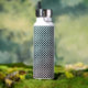 This is a Habatour Creations water bottle, filled with an authentic modern abstract digital pattern design.