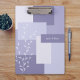 This clipboard features a sophisticated dusty purple and pale lavender color block pattern, topped with a soft, nature-inspired leaf motif. Designed to bring a sense of quiet beauty to even the busiest environments, it’s a perfect companion for teachers, healthcare workers, or home office organization. Personalize it with your name or title to make this functional tool a beautiful piece of desk art.