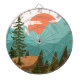 Introducing our Modern Abstract Forest, Mountains, and Sunrise Dart Board. Featuring nature landscape illustration in vintage style. Suitable for as a gift for nature lovers.