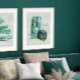 Modern Abstrakt Boho Style Green n Gold Aquarell Foliendrucke