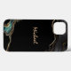 Modern Agate Black Gold Glitzer Script Name iPhone 13 Fall
