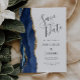 Modern Agate Navy Blue Gold Save the Date