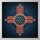 A bold and modern fusion of the Zia sun symbol with the American flag, featuring clean geometry and subtle texture for a contemporary patriotic look.