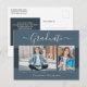 Schöne 2 Foto Abschluss Ankündigung Postkarten. Moderner Text mit eleganter Kalligraphie-Schrift in hellgrau auf Regaltönen staubigen Blau. Um mehr zu sehen, besuchen Sie meinen Shop hier unter "www.Zazzle.com/LakeViewCardCo". Danke