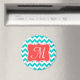 Moderne Aqua Coral Zickzack Zig Zag Streifen Stoff Muster Muster Monogramm Erstklassiges Küchenmagnet Personalisiert