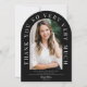 Dieser schlichte elegante Foto-Abschluss Dankeschön-Karte verfügt über ein modernes, vertikales Foto mit dem Text "danke" in eleganter Typografie mit anpassbarem Skriptnamen und zusätzlichem Text auf der Vorderseite, um "Class of 2025" oder Ihre Textauswahl hinzuzufügen. Schwarzer Hintergrund mit weißem Text. Der Rücken ist leer für Ihre persönliche handgeschriebene Nachricht. Klicken Sie auf die Schaltfläche Bearbeiten, um dieses Design zu personalisieren.