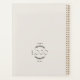 Sleek and minimal real estate notebook planner design featuring a professional arched photo frame and clean typography. Ideal for realtors, brokers, and real estate professionals to keep notes, client details, and property listings organized. This elegant design adds a personal, branded touch — perfect as office stationery, client gifts, or team branding. Fully customizable with your own photo, name, and business details.