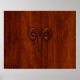 Modern Aries Zodiac Symbol auf Mahagoni wie Druck Poster