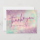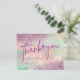 A dreamy pastel Thank You card featuring a soft watercolor background blended with subtle glitter textures in pink, mint, and lavender tones. The elegant handwritten typography adds a personal and artistic touch, making it perfect for small business packaging, handmade artwork orders, creative shops, and boutique brands.