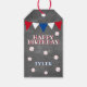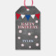 Modern Baseball Chalkboard Kinder Happy Birthday Geschenktag // Niedlich Baseball Geburtstag Geschenk Tag für Kinder. Das Design hat Baseballs und bunte Fahnen in Rot, Weiß und Blau auf dem Chalkboard-Hintergrund. Personalisieren Sie dieses Tag mit dem Namen eines Kindes. Ideal für einen Jungen, der Baseball und andere Sportarten Liebe.