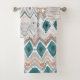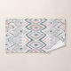 Modernes boho-Ambiente mit Zickzack, rautendem und gestreiftem Muster in aquamarin, pfirsichfarben und blassgrau. Matching Duschvorhang und Badematte vorhanden.