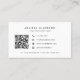 Machen Sie eine kühne Aussage mit der modernen Beruflichen Black & White QR Code Logo Business Card. Dieses puristische Design vereint elegante Schwarz-Weiß-Elemente und verleiht dem Ganzen einen modernen, polierten Look. Ihr Firmenlogo übernimmt die Bühne des Zentrums, gepaart mit einem individuellen QR-Code für nahtlose digitale Konnektivität, sodass Kunden sofort auf Ihre Website, Kontaktinformationen oder Ihr Portfolio zugreifen können.