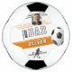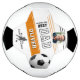 Moderner Bester Vater Pater Keepake Foto Fußball Fußball-Ball. Feiern Sie stilvoll mit diesem eleganten Fußball, Fußball-Design! Dieses sportliche Design mit Schwarz, Weiß und Orange, fett gedruckten Buchstaben und realistischen Fußballgrafiken ist perfekt für jeden Papa-Fußballfan. Das Design zeigt dynamische Player-Silhouetten, ein Fußballbild und Streifen Details. Fügen Sie den Namen, Foto und machen Sie einen großartigen Sport-Sake für einen Vater.