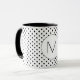 Modern Black and White Initial Monogram Polka Dot Mug.