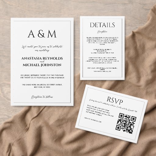 Modern black and white minimalist wedding einladung