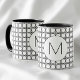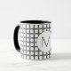 Modern Black and White Rattan Pattern Monogram Mug.