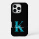 Modern Black Aquamarin Script Monogram iPhone Hülle