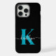 Modern Black Aquamarin Script Monogram iPhone Hülle