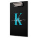 Modern Black Aquamarin Script Monogram Klemmbrett