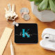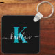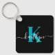 Modern Black Aquamarin Script Monogram Schlüsselanhänger