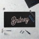 Der moderne Black Blush Dusty Pink Monogram Name Desk Mat verbindet raffiniertes Schwarz mit einem weichen, rosa Dusty Rosa Namen, der ein personalisiertes Monogramm und einen Namen in einem eleganten Skript enthält. Diese stilvolle und funktionelle Schreibtischmatte erweitert jeden Arbeitsbereich und bietet eine glatte Oberfläche zum Schreiben, Schreiben und anderen Aufgaben. Sie ist somit eine perfekte Mischung aus Eleganz und Praxisnähe.