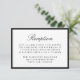 This reception enclosure card features “Reception” in elegant black calligraphy at the top, followed by your reception details presented in classic serif lettering. A bold black border frames the design, creating a clean, structured look that feels timeless and polished. The refined layout provides a beautiful way to share your reception time and location with guests, making this enclosure ideal for modern, classic, and formal wedding celebrations. Personalize the wording to create an insert that feels cohesive, elevated, and thoughtfully designed.
