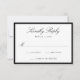 This wedding RSVP card features elegant black calligraphy script at the top, paired with classic serif lettering and space for your desired wedding response date. A bold black border frames the design, creating a polished and structured look that feels timeless and refined. The clean layout offers a sophisticated way for guests to reply, making this RSVP card well-suited for modern, formal, and classic wedding celebrations. Personalize the wording to create a response card that feels intentional and beautifully designed.