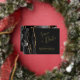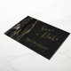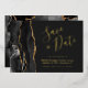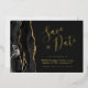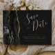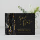Diese elegante, moderne Save the Date-Karte verfügt über einen schwarzen Aquarellstreifen mit vergoldetem Imitat-Glitzer. Der anpassbare Text kombiniert handgeschriebene Schriften aus Goldfolie, Copperplate und kursiv auf einem schwarzen Hintergrund. Auf der Rückseite ist ein passendes schwarz-goldfarbenes Agerat-Design zu sehen.