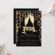 Ring in 2026 with a modern New Year's eve invitation featuring champagne glasses toasting, and cascading glowing string lights. gold on black with the year "2026" shiny balloon shapes. Sets a festive mood for your celebration. Personalize the text with your names party details date time and location so guests have everything they need in one chic card. Perfect for house parties cocktail gatherings or formal adult New Years Eve events in a classic black and gold theme. Available in print as a digital download or both.
