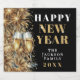 The text runs vertically down the right side in a mix of white and gold serif fonts. "Happy New Year" is featured prominently at the top, with space below to add the family or host’s name and the year for a personalized finish.