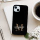 Modern Black Gold Monogram Feminine Script Name Case-Mate iPhone Hülle