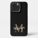 Moderne Black Gold Monogram Feminine Script Name iPhone Case. Dieses elegante iPhone-Gehäuse lässt sich einfach mit Ihrem individuellen Monogramm und Namen personalisieren.