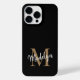 Modern Black Gold Monogram Feminine Script Name iPhone Hülle