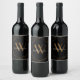Modern Black Gold Monogram Name Script Geometrisch Weinetikett