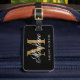 Moderne Monogram Schwarz-weiß Gold Calligraphy Name Gepäckanhänger. Ein stilvolles personalisiertes Geschenk oder Gastgeschenk.