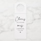 Elevate your bridal shower decor with the "Modern Black Handwriting Script Cheers Future Mrs. Bottle Hanger Tag." These tags perfectly fit your bridal shower, featuring a modern handwriting script and minimalist design. Not only do they add an elegant touch, but they also serve as fantastic favors to show your love and appreciation to your guests. Customizing them is simple – add the name and event information to create a personalized keepsake for your special day.