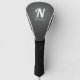 Modern Black Leather Textur White Monogram Name Golf Headcover