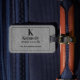 Classic design featuring black lettering on light grey denim print on this minimalist travel luggage tag. Change or remove initial, name, location, to make it yours using the Template provided. This is a 2"x3.5" (standard business card size) quality, sturdy and weatherproof luggage tag with a leather strap. For yourself or a thoughtful gift for someone special, this is also ideal for laptop bag, backpack, attaché-briefcase or gym bag. The back is white; you can add color, text and/or a photo using the easy Design Tool, if you like.