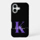 Modern Black Lila Script Monogram iPhone 16 Hülle