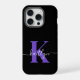 Modern Black Lila Script Monogram iPhone Hülle