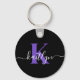 Modern Black Lila Script Monogram Schlüsselanhänger