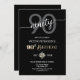A modern minimalist design featuring elegant calligraphy on a black background. Customize the details for a cool Birthday Celebration.
