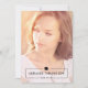 Dieses schlichte, moderne Foto Graduiertenfest lädt mit einer eleganten Namensplatte und Graduierkappe, die eine vollblühende vertikale Fotovorlage überlagern. Details zum Grad-Party finden Sie auf der Rückseite der Karte.