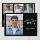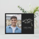 Celebrate your graduate with this modern black photo graduation party card featuring a bold, minimalist layout and elegant typography. The front highlights a favorite senior photo with a classic graduation cap design, while the back showcases a stylish multi-photo collage with party details.