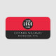 Elevate your team's professional image with this sleek, modern black and red name tag. Featuring a luxe style customizable logo placement, this business name badge is perfect for employees, conferences, events, and office staff. Add your custom name and professional title below, providing an elegant, upscale look. It’s an ideal choice for businesses seeking a stylish, yet practical, identification solution.