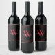 Modern Black Red Monogram Name Script Geometrisch Weinetikett