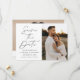 Mit dieser trendigen, modernen Black Script Foto Save the Date Karte verkünden Sie Ihre bevorstehende Hochzeit im Stil! Das Design zeigt "Save the Date" in trendiger schwarzer Kalligrafie. Personalisieren Sie die Vorderseite des Minimalisten Save the Date mit Ihren Namen, Hochzeitsdatum, Ort und senkrechten Verlobung Foto. Auf der Kartenrückseite wird ein horizontales Foto mit Ihrer Hochzeitswebsite angezeigt. Das elegante Schwarz-Weiß-Ambiente ist Save the Date die perfekte Wahl für moderne Hochzeiten.