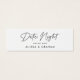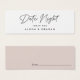 Benutzen Sie diese kleinen Karten, um Ideen für Datums Nacht zu sammeln, damit die bald Neuvermählten sein können. Das Design zeichnet sich durch moderne, handgeschriebene Schriftzeichen aus schwarzem Schriftzeichen aus, die auf der Rückseite mit massivem, weichem Rosa bedruckt sind.