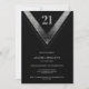 Mit dieser modernen Party Einladung zum 21. Geburtstag in Schwarz und Silber laden Sie Ihre Freunde und Bekannten ein, die über einen benutzerdefinierbaren Textbereich verfügen, in dem Sie mühelos alle für Ihre Geburtstagsfeier notwendigen Informationen, einschließlich Datum, Uhrzeit, Veranstaltungsort und UAWG, einschließen können. Für Ihre einmaligen Einladungen stehen verschiedene Papiertypen und Eckstile zur Verfügung, ebenso die Möglichkeit zum Download, wenn Sie ein digitales Format bevorzugen.