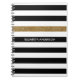 Personalisieren Sie dieses moderne, breite horizontale schwarz-weiße Streifen Muster Notebook mit einem goldenen Glitzer Streifen, indem Sie den Namen jedes Girly Girl. Dieses trendige, gestreifte Muster ist perfekt für die schicke Mode. Flachbild, NICHT Glitzer.